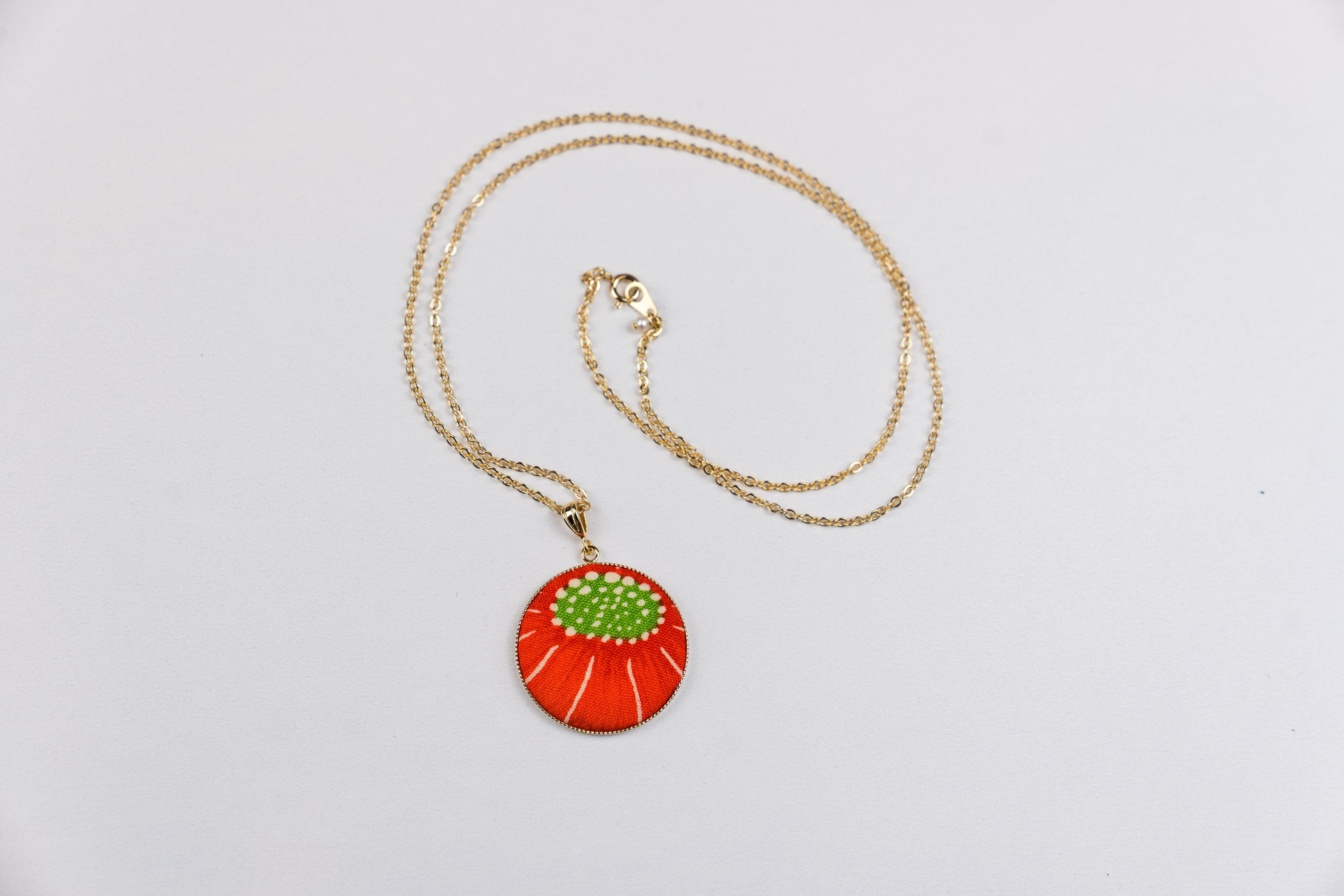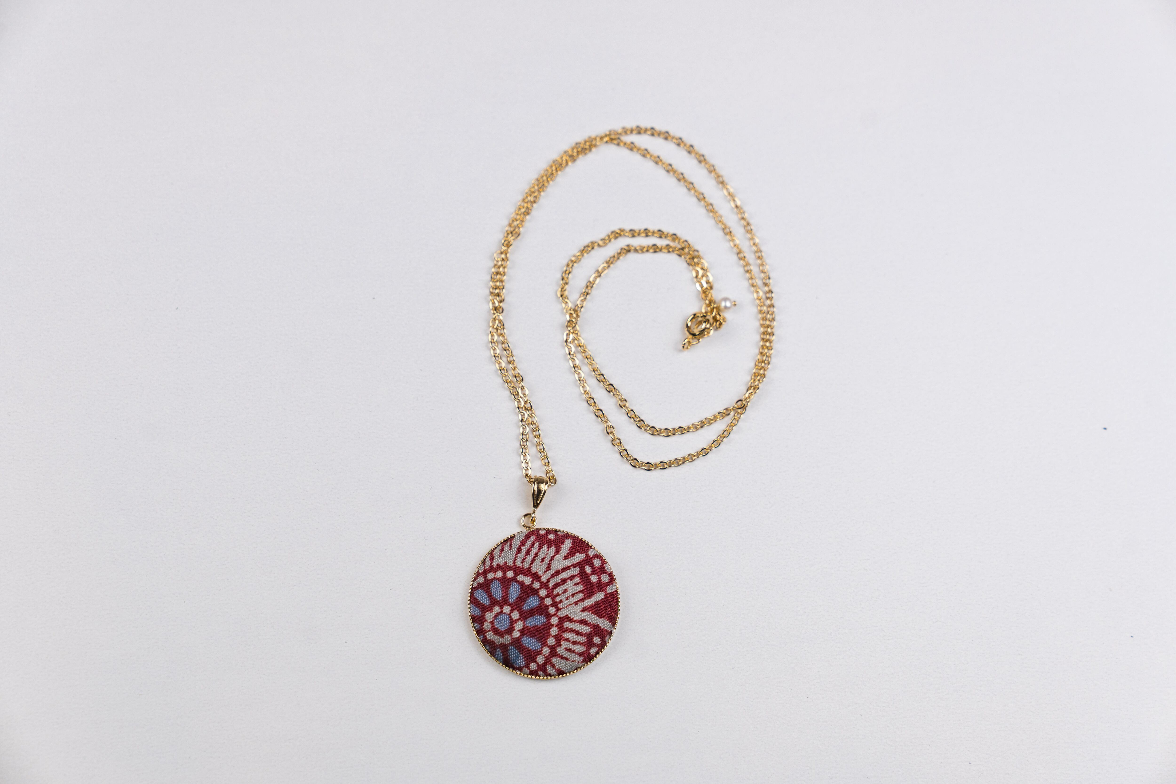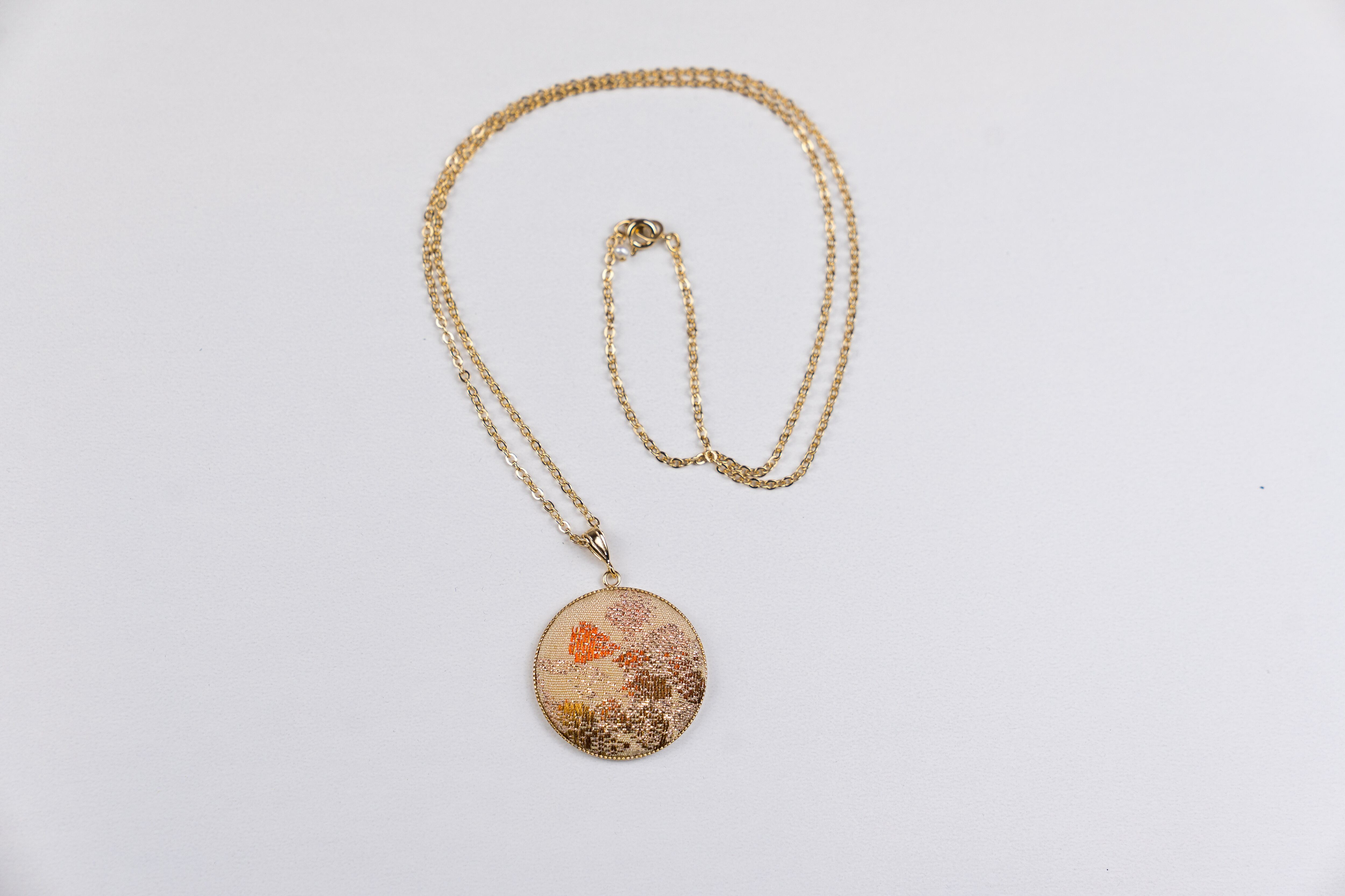 和の雰囲気が漂う、着物生地を使い制作されたネックレスです。